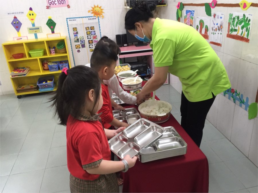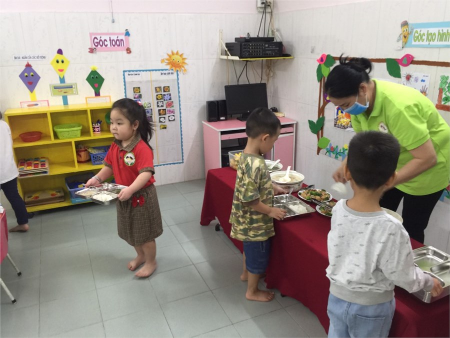 Trẻ lớp Chồi sử dụng khay để ăn