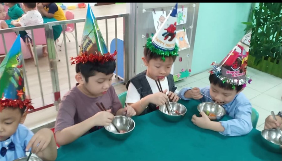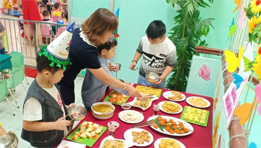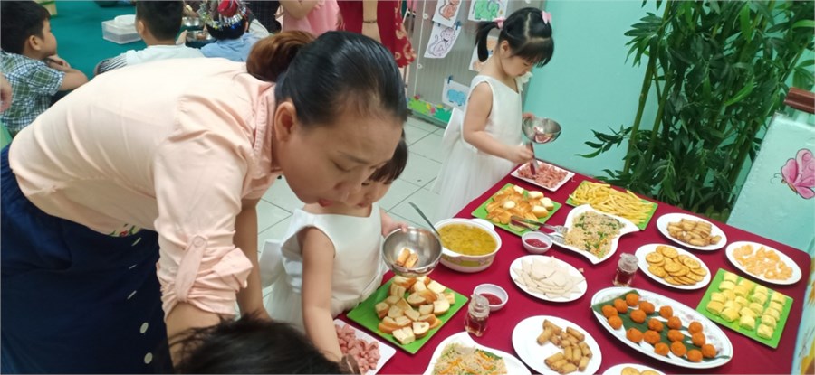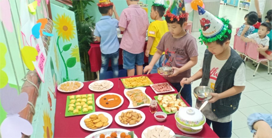Nhằm lưu giữ cho trẻ những kỷ niệm đáng yêu khi học ở trường mầm non, giúp trẻ hứng thú ham thích đến trường đến lớp. Trường Mầm non 14 đã tổ chức cho trẻ ăn buffet sáng nhân dịp sinh nhật của các bé có ngày sinh trong tháng 2 và tháng 3. Đây là dịp để các cháu giao lưu cùng Cô và các bạn, được chọn lựa món ăn theo ý thích, hình thành cho trẻ những hành vi văn minh trong ăn uống. Đồng thời rèn luyện cho trẻ kỹ năng sử dụng nhiều loại đồ dùng trong bữa ăn. Các cháu rất vui vẻ, thích thú. Sau đây là một số hình ảnh: